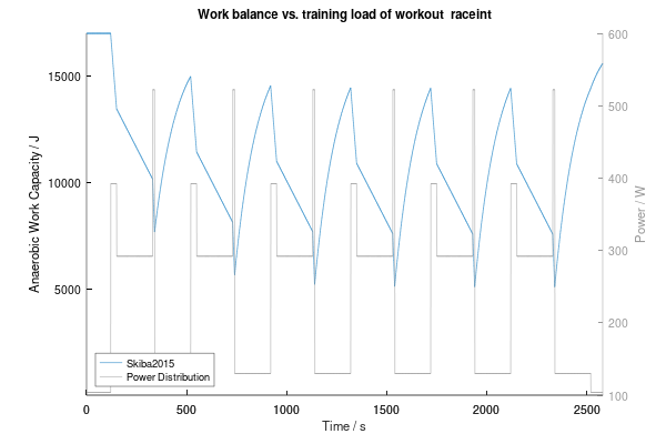 - The workouts are based on validated training models (see Skiba 2015) for calculation of remaining anaerobic work capacity. All workouts are calibrated according to the given anaerobic work capacity (AWC) and a exhaustion level of around 25-30% while demanding one full hour of intense workouts.
